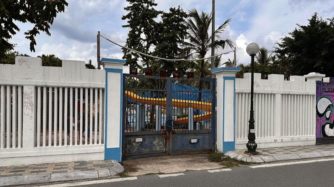 한참 돌다보니 담장 뒤로 워터파크가 보였습니다. 수영복 입은 사람들이 수영하는 모습을 보니