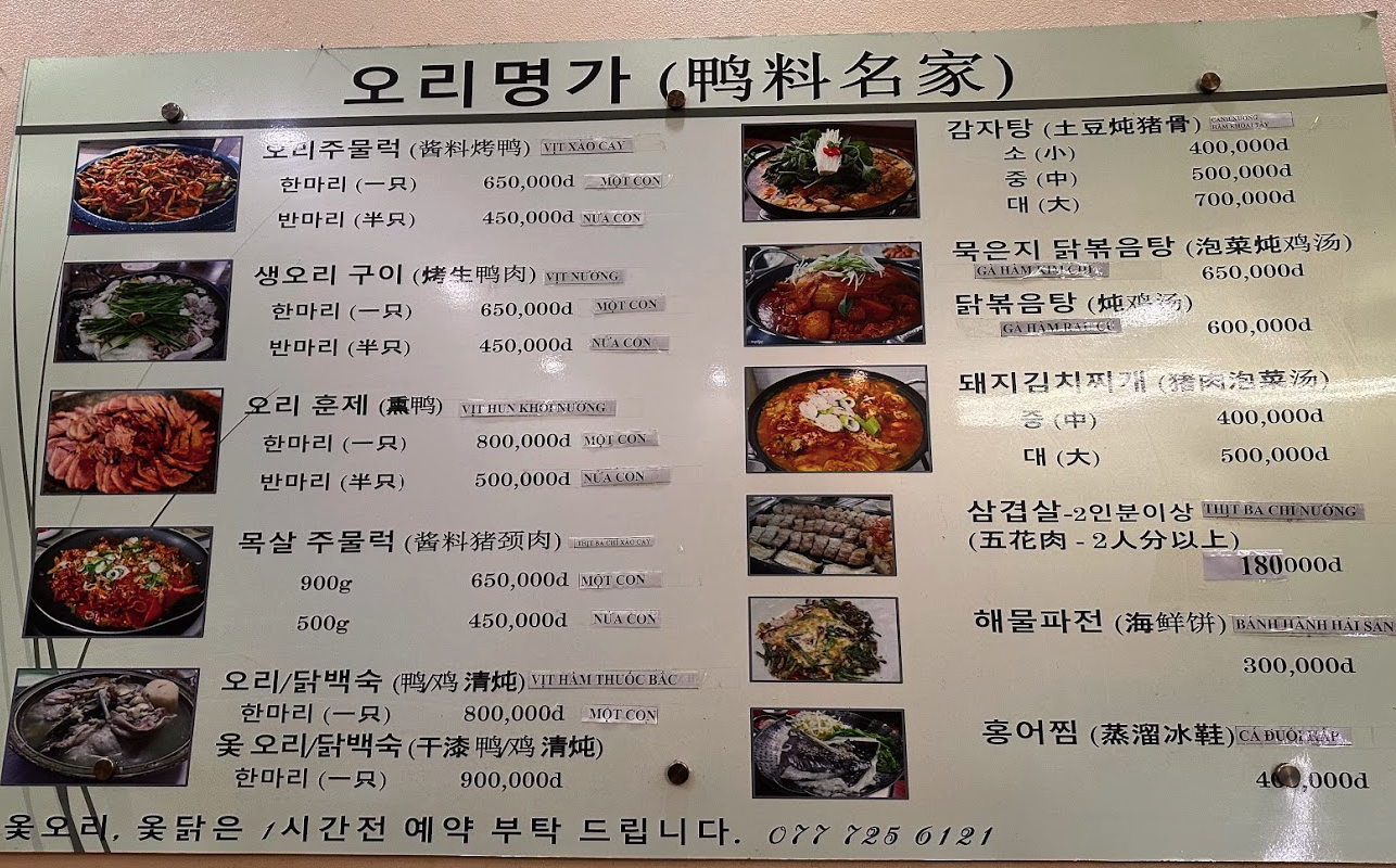 베트남에서는 전문점이라고는 하지만 이것저것 할 수 있는 모든 요리를 표시해 놓는 것 같았습니다.