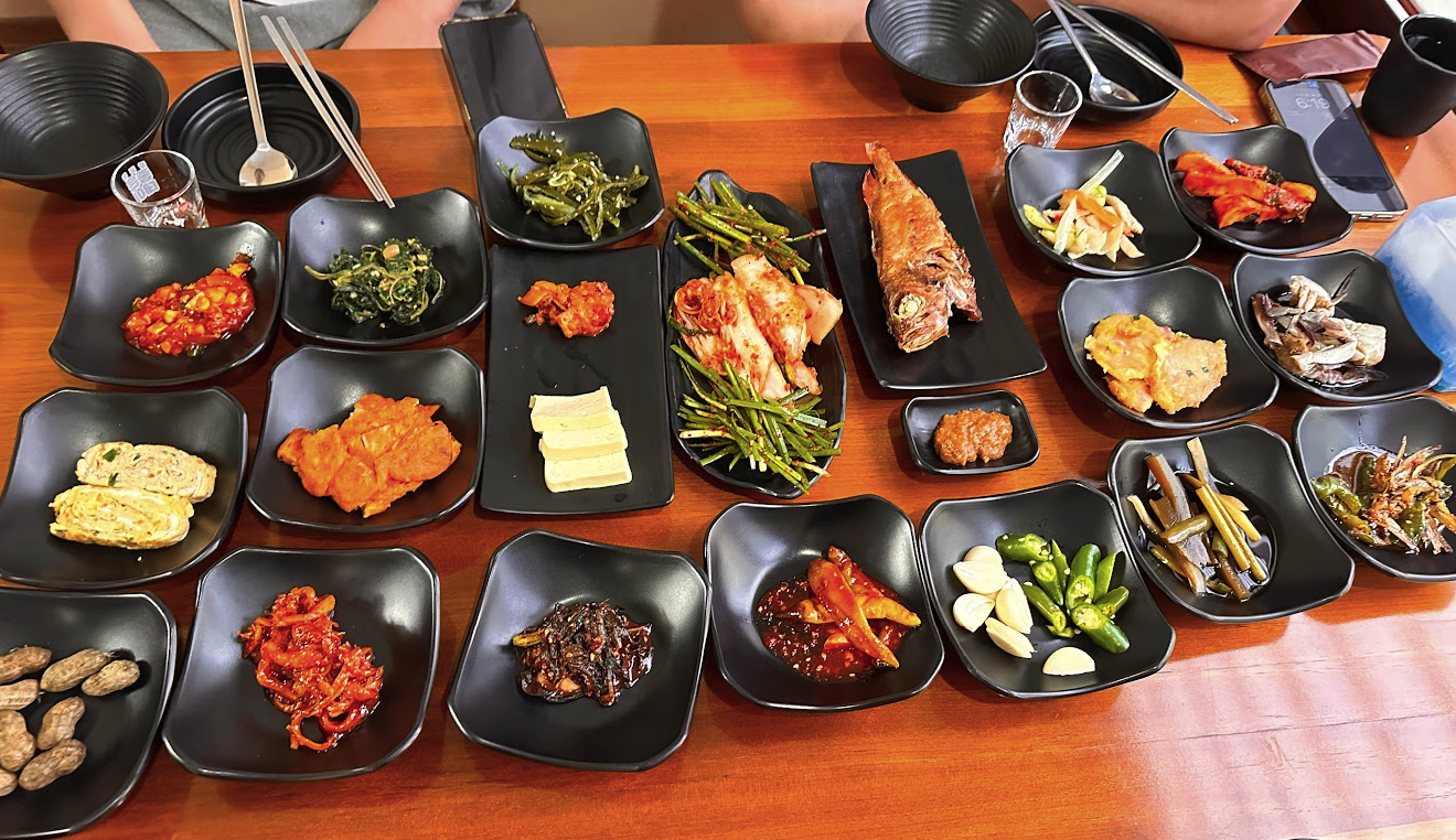 오리 명가의 밑반찬 입니다. 모든 반찬들이 한국에서 나오는 반찬 그대로 입니다.