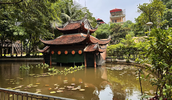연못에는 중국식 건물을 볼 수 있었습니다. 아마도 과거에 중국의 영향을 받아